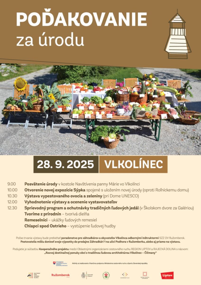 Podujatie Poďakovanie za úrodu patrí k každoročným tradíciám vo Vlkolínci, lokalite zapísanej od roku 1993 v Zozname svetového dedičstva UNESCO. Súčasťou tohtoročnej akcie, ktorá sa uskutoční v nedeľu 28. septembra, bude aj otvorenie novej expozície v historickom objekte Sýpky, spojené s uložením novej úrody.