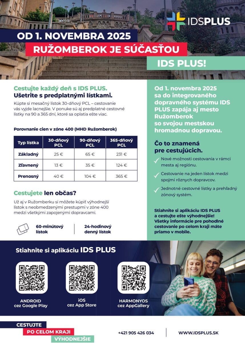 „Zaradením Ružomberka do IDS PLUS sa uzatvára proces integrácie všetkých regiónov Žilinského samosprávneho kraja do jednotného dopravného systému. IDS PLUS ponúka verejnosti prehľadný, ekologický a ekonomický spôsob cestovania naprieč krajom – s jediným lístkom, lepšou koordináciou spojov a zvýhodnenými tarifami pre pravidelných cestujúcich,“ hovorí Richard Staškovan, konateľ spoločnosti Integrovaná doprava Žilinského a Trenčianskeho kraja s.r.o., ktorá je organizátorom IDS PLUS.