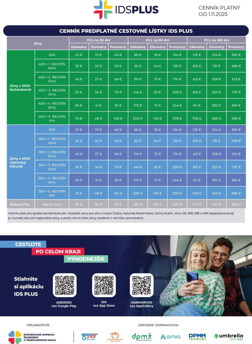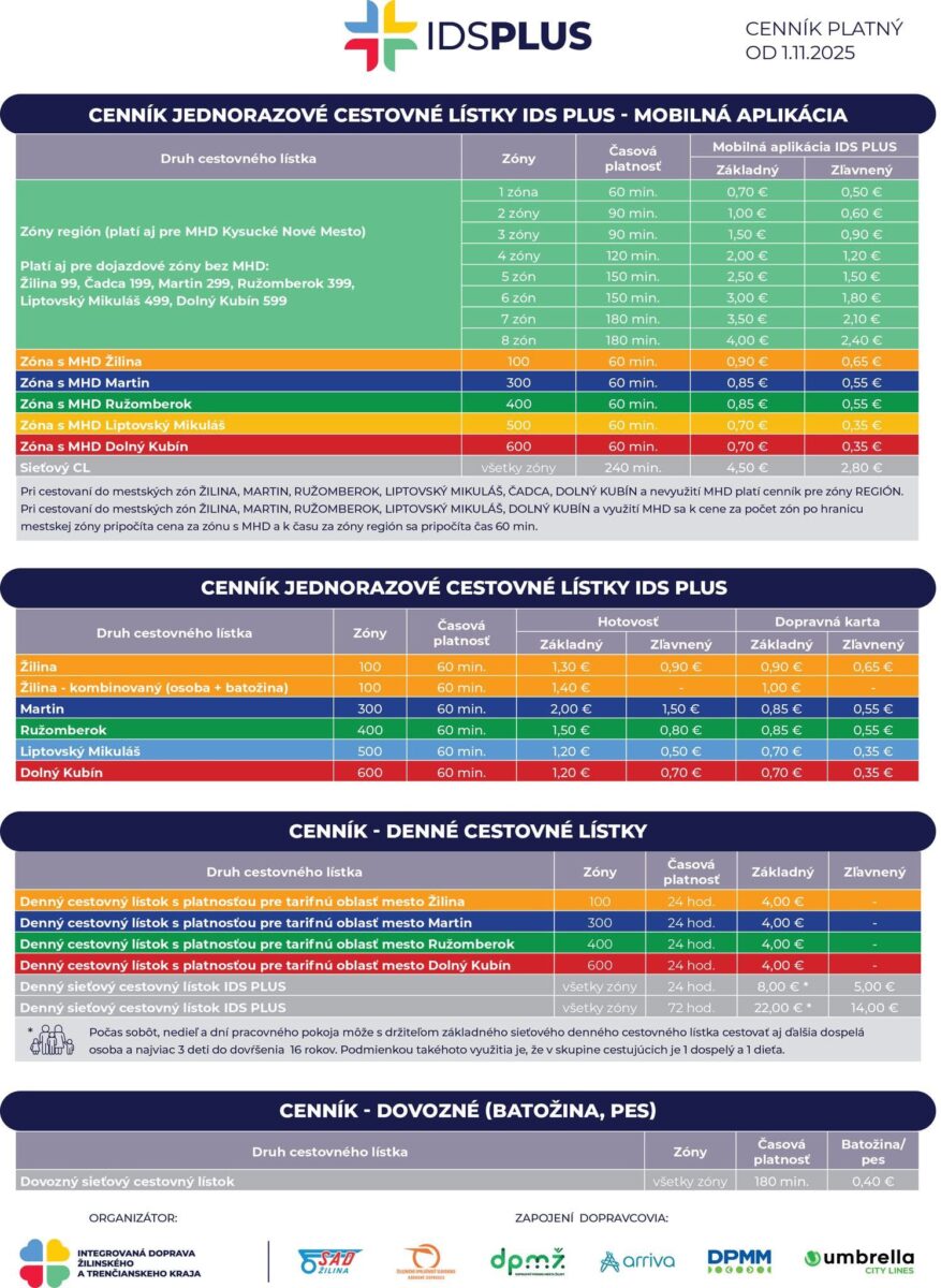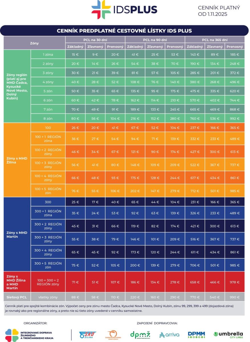Na www.idsplus.sk nájdete mapu zón, ako aj nový cenník platný pre celý Žilinský kraj.