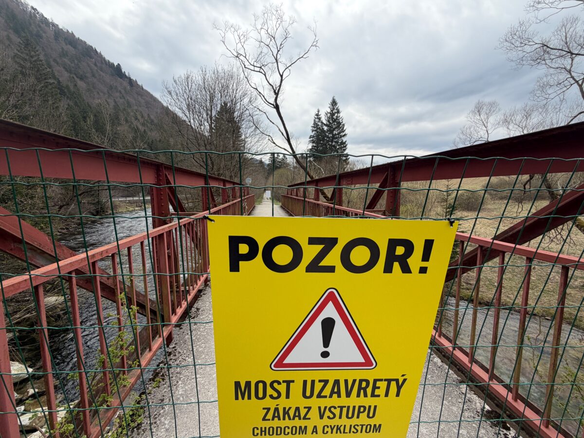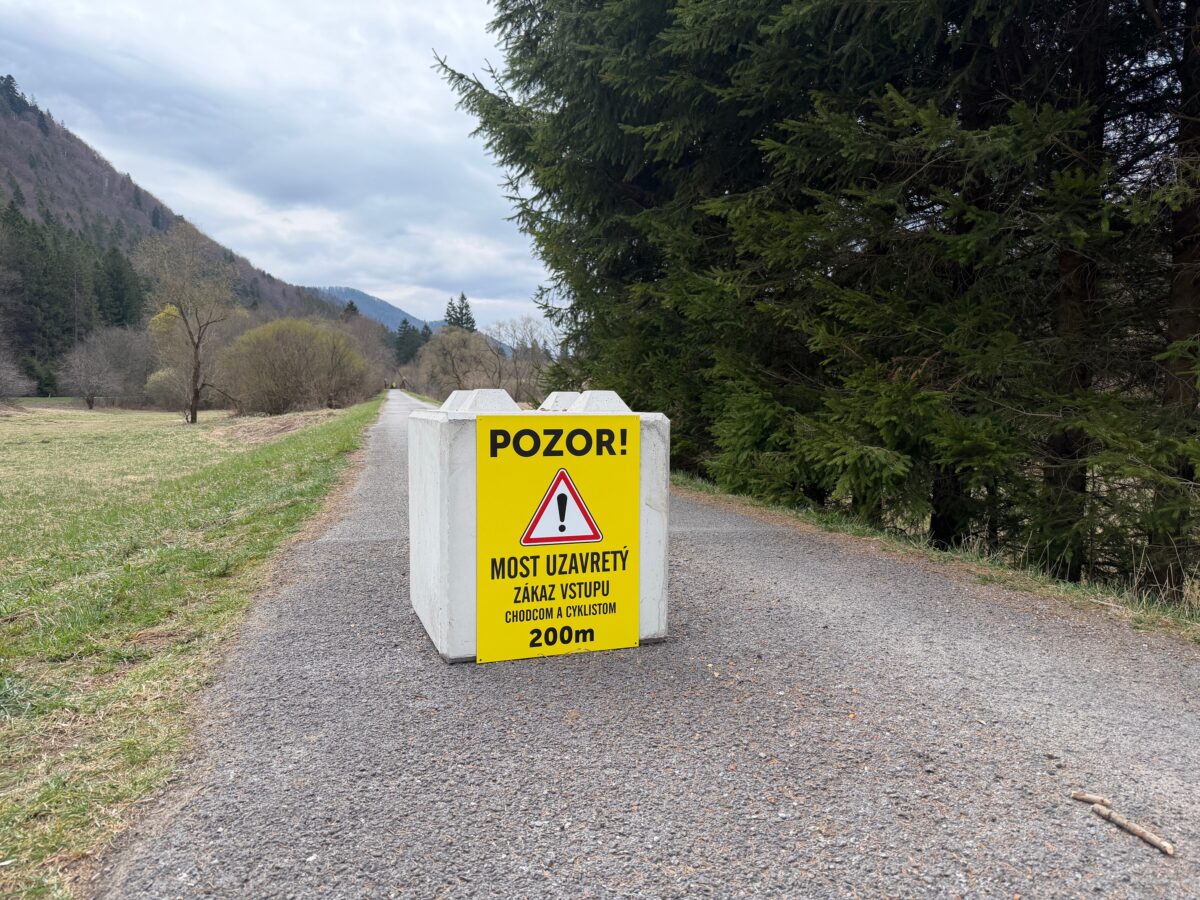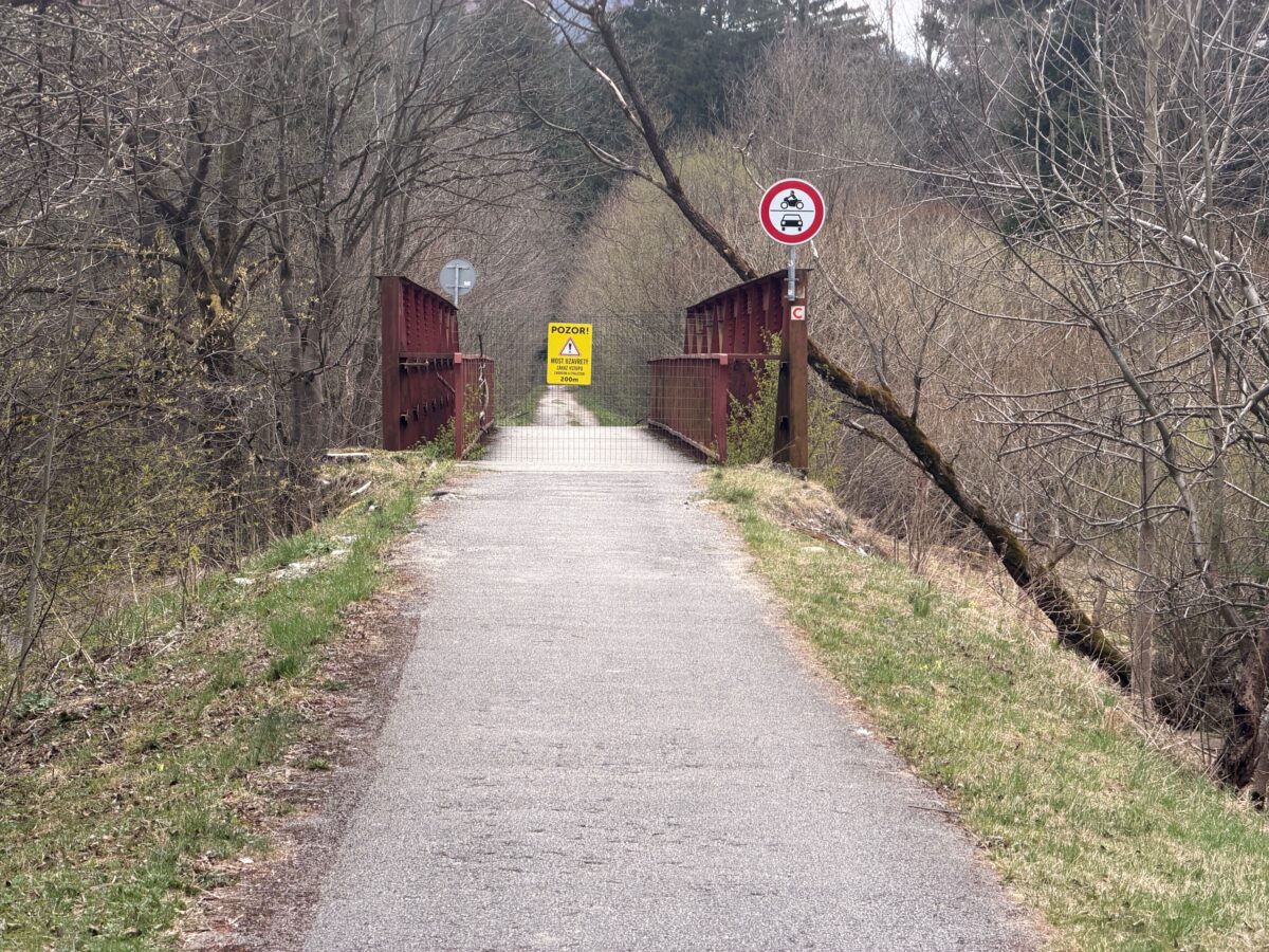Cyklomost sme zabezpečili proti vstupu. Na jeho uzatvorenie upozorňujú výstražné tabule, betónové zábrany z jedného i druhého smeru, ale aj inštalované pletivo.