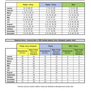 Harmonogram vývozu separovaného zberu v roku 2026