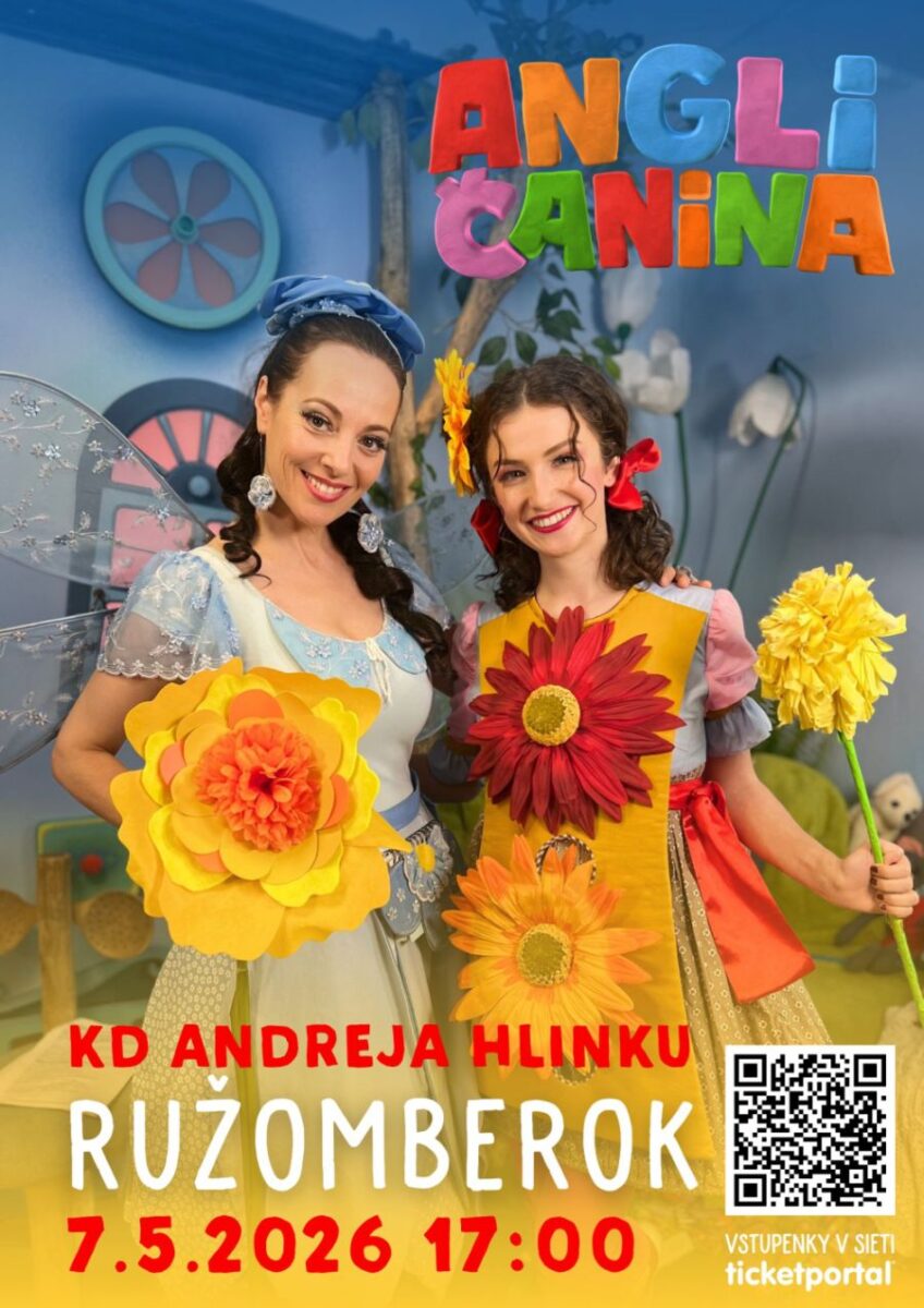 Zabavíme sa, zaspievame si, aj sa veľa naučíme – napríklad o zvieratkách, rodine, jedle, farbách, ľudskom tele alebo počítaní. Prostredníctvom príbehov, rytmizácií a pesničiek si vaše deti môžu rozšíriť slovnú zásobu a naučiť sa aktívne komunikovať po anglicky. Angličanina je interaktívny koncert kde sa dobre zabavíte aj sa veľa naučíte.