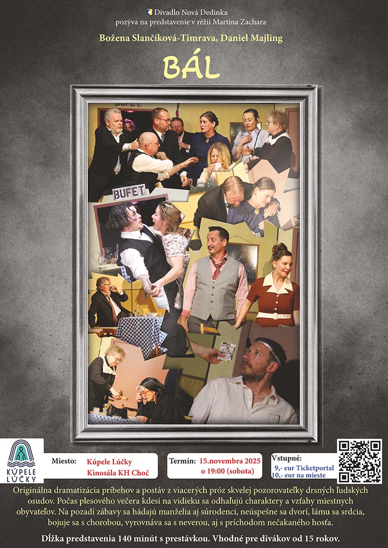 Divadlo Nová Dedinka a Kúpele Lúčky vás pozývajú na divadelné predstavenie Bál: úspešnú tragikomédiu utkanú z viacerých próz Boženy Slančíkovej Timravy v úprave Daniela Majlinga.