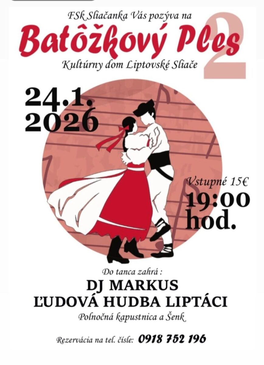 Folklórna skupina Sliačanka vás srdečne pozýva na Batôžkový ples.