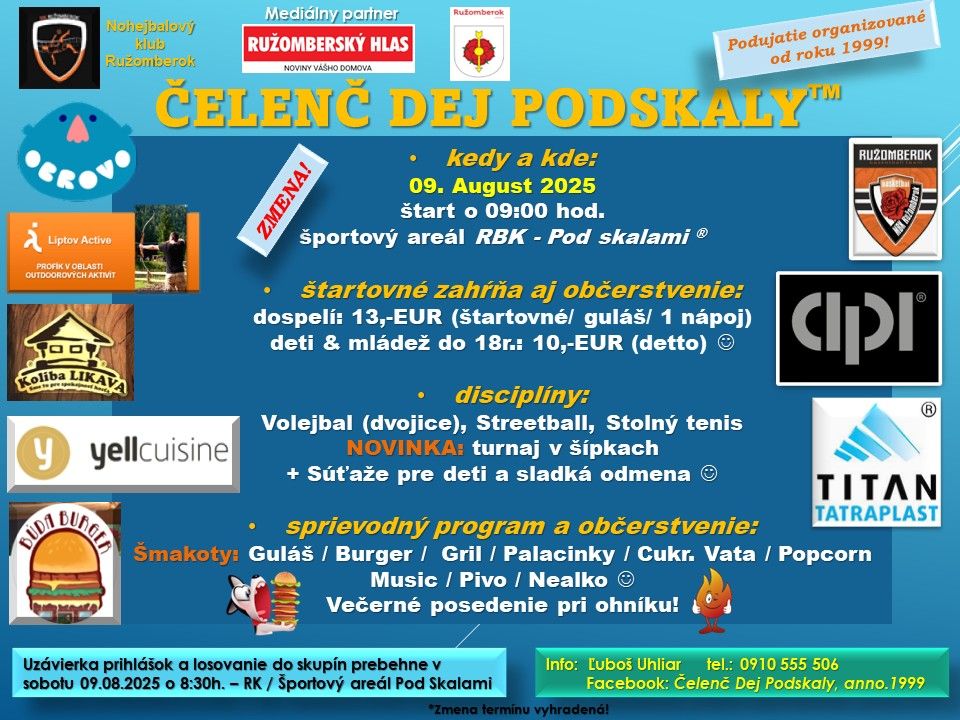 ZMENA TERMÍNU KONANIA Z DÔVODU NEPRIAZNIVEJ PREDPOVEDE POČASIA. PODUJATIE SA USKUTOČNÍ 09.08.2025.