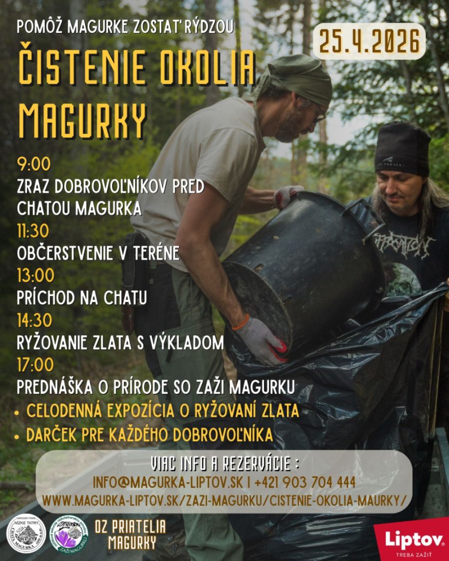 Popri tom sa dozviete niečo o baníctve na Magurke a urobíte si krátky výlet do jednej zo štôlní. Súčasťou podujatia bude aj tematická prednáška o ochrane prírody na Slovensku. Každý dobrovoľník dostane, okrem dobrého pocitu, odmenu.