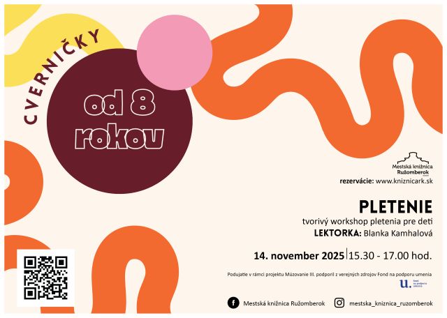 Mestská knižnica Ružomberok vás srdečne pozýva na podujatie Cverničky: tvorivé dielne pre deti od 8 rokov.