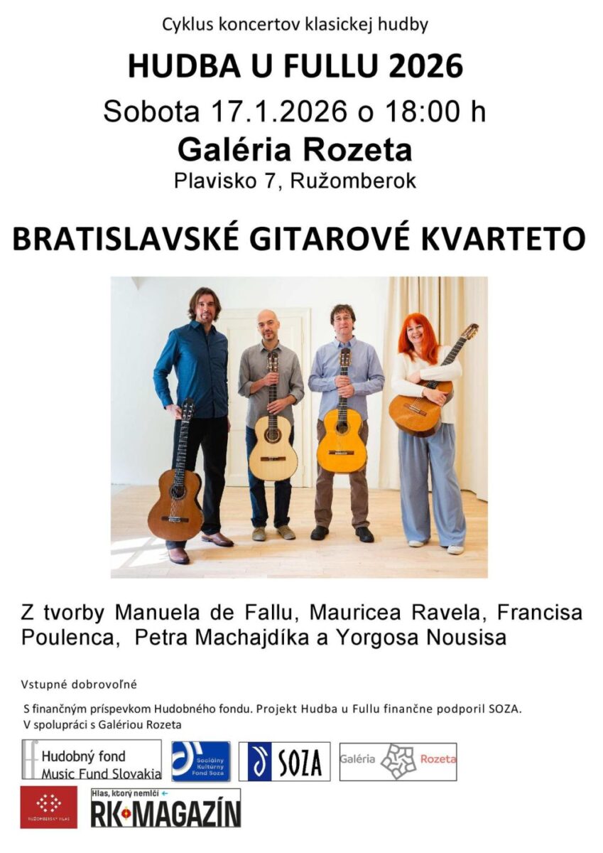 HUDBA U FULLU 2026: BRATISLAVSKÉ GITAROVÉ KVARTETO (Galéria Rozeta)