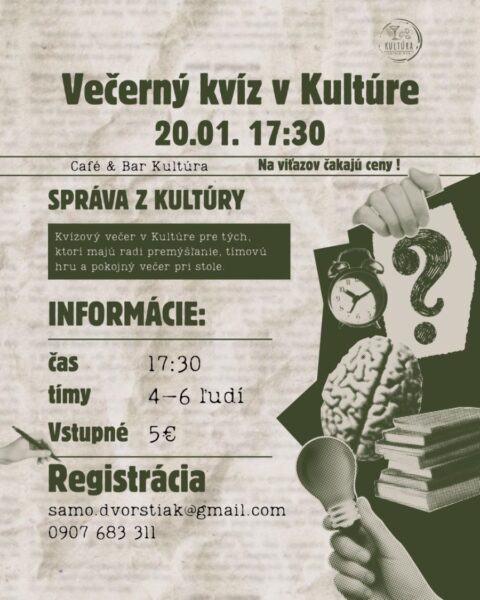 Zostavte si tím, vyladíme vaše vedomosti a bojujte o atraktívne ceny. Každý tím dostane priestor predviesť, čo vie – či už ste odborníci na históriu, popkultúru alebo šport, čaká na vás výzva.