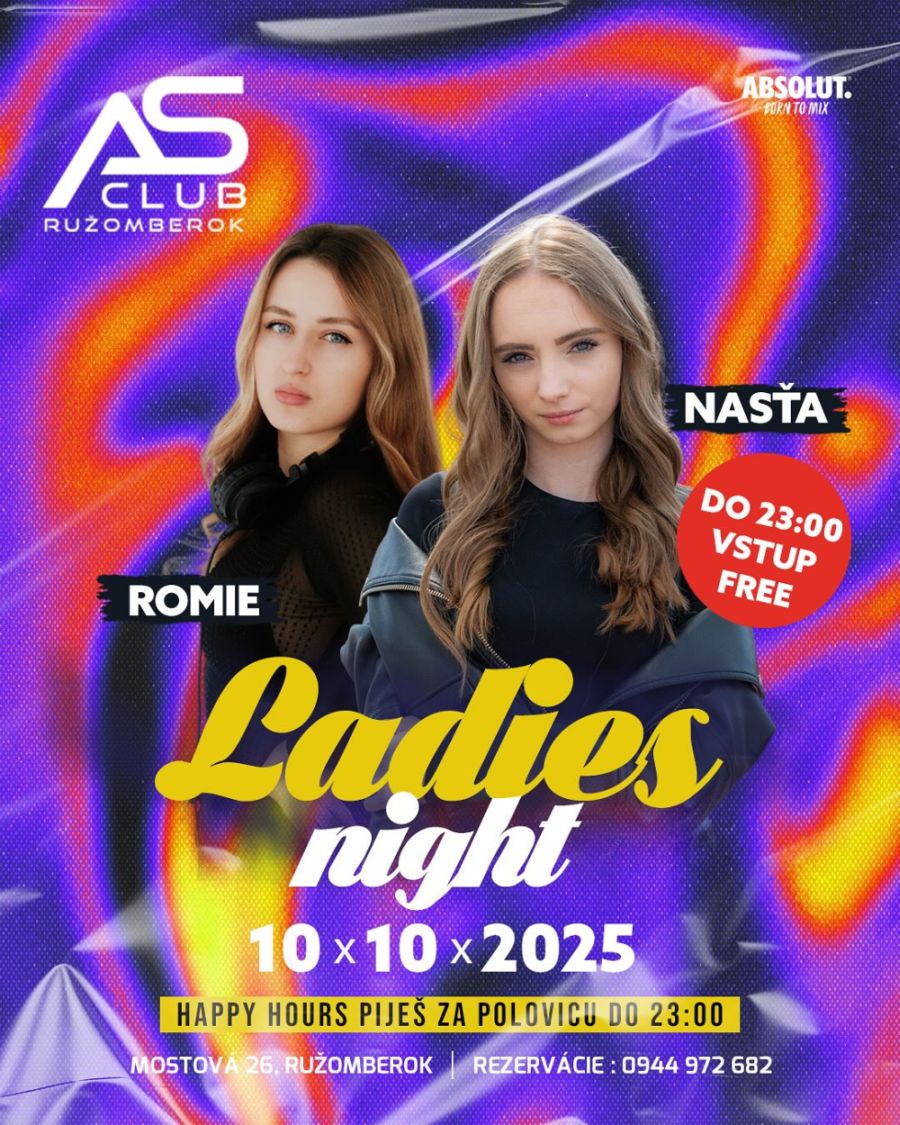 Večer patrí všetkým dámam. Špeciálne drinky, ženský vibe a Romie s Nasťou rozprúdia parket ako nikdy predtým.