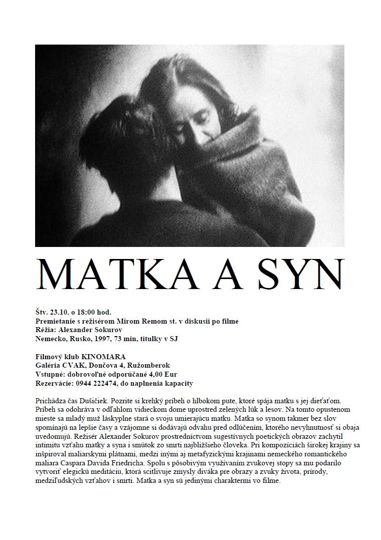 Galéria Cvak vás pozýva na premietanie drámy Matka a syn.