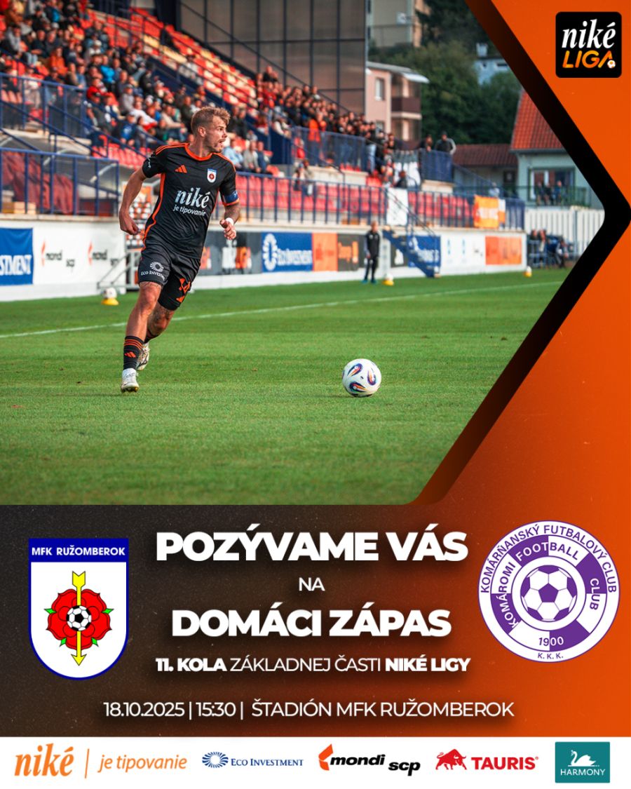 MFK Ružomberok vás pozýva na domáci zápas 11. kola základnej časti futbalovej Niké ligy MFK Ružomberok – KFC Komárno.