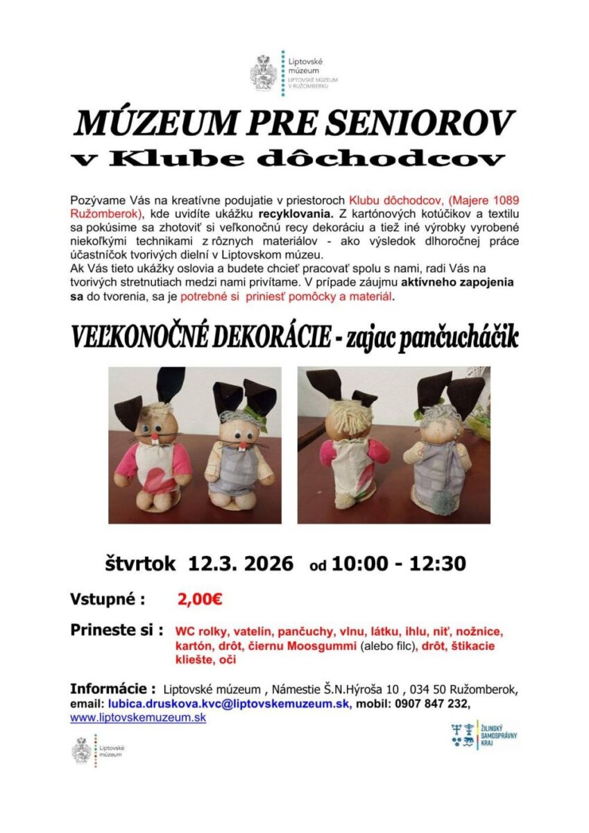 Informácie: 0907 847 232, e-mail: lubica.druskova.kvc@liptovskemuzeum.sk