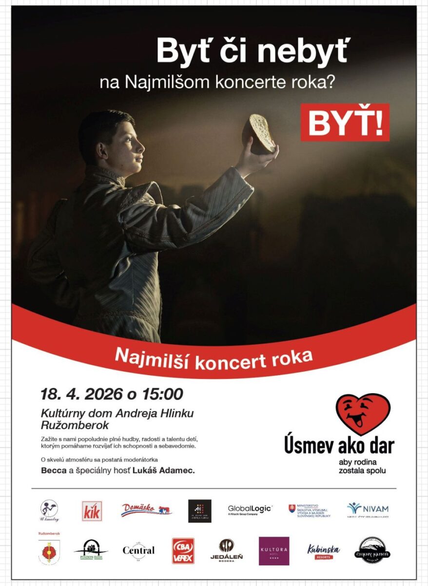 Najmilší koncert roka, ktorý organizuje Úsmev ako dar, vstupuje do svojho XXXVI. ročníka ako silné a vizuálne výnimočné podujatie, ktoré každoročne dáva deťom z centier pre deti a rodiny priestor vystúpiť, prejaviť sa a zažiť niečo, čo často nemali komu ukázať – seba.