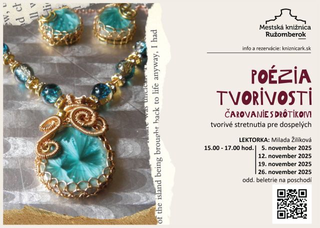 Mestská knižnica Ružomberok vás pozýva na tvorivé dielne pre dospelých.