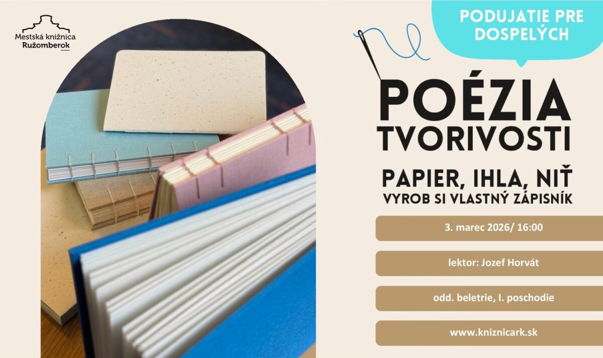 Mestská knižnica Ružomberok vás pozýva na tvorivé dielne pre dospelých.