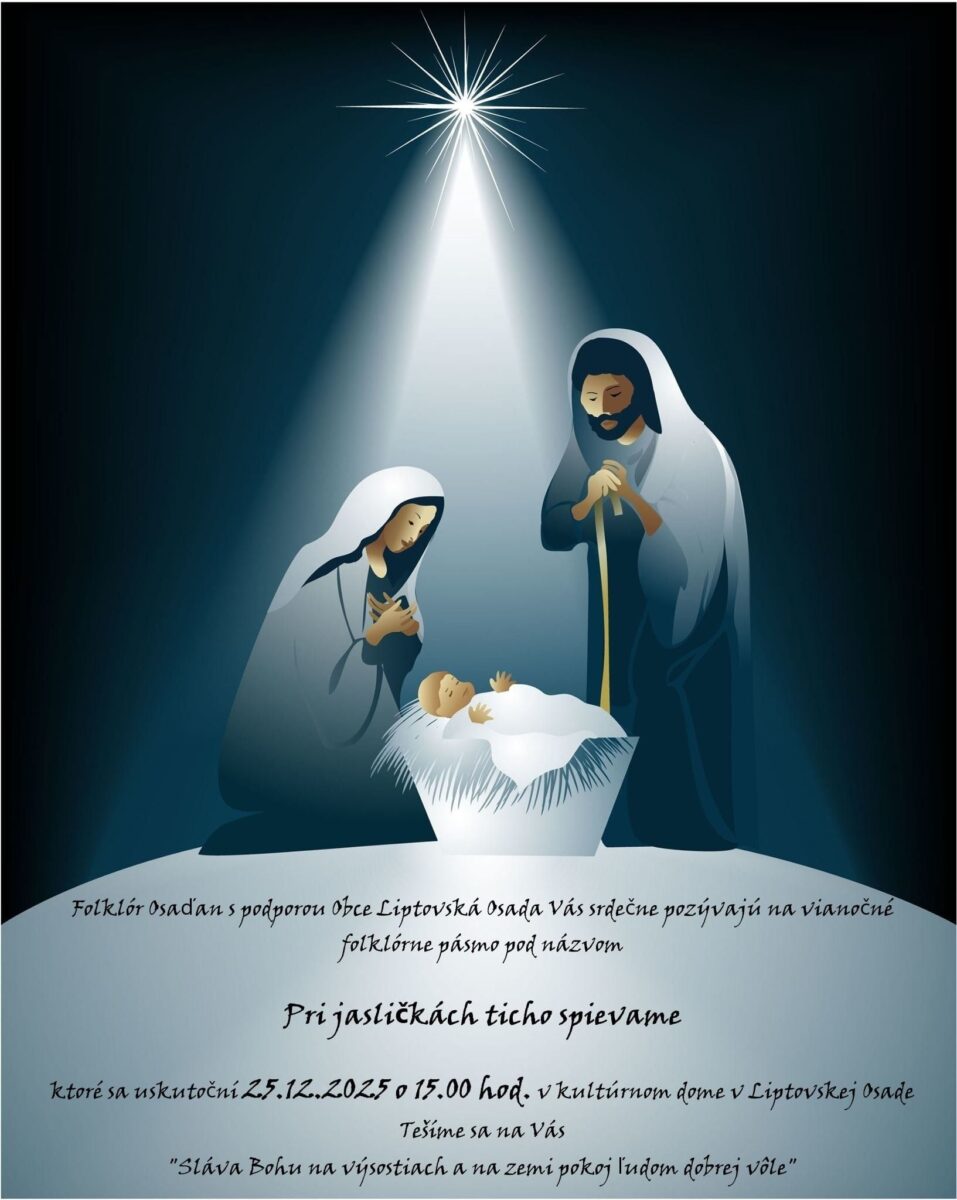 Folklór Osaďan a Obec Liptovská Osada Vás srdečne pozývajú na vianočné folklórne pásmo pod názvom Pri jasličkách ticho spievame.
