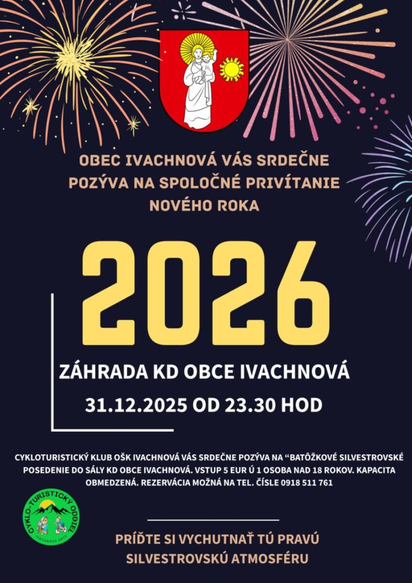 Obec Ivachnová vás srdečne pozýva na Spoločné uvítanie Nového roku 2026.