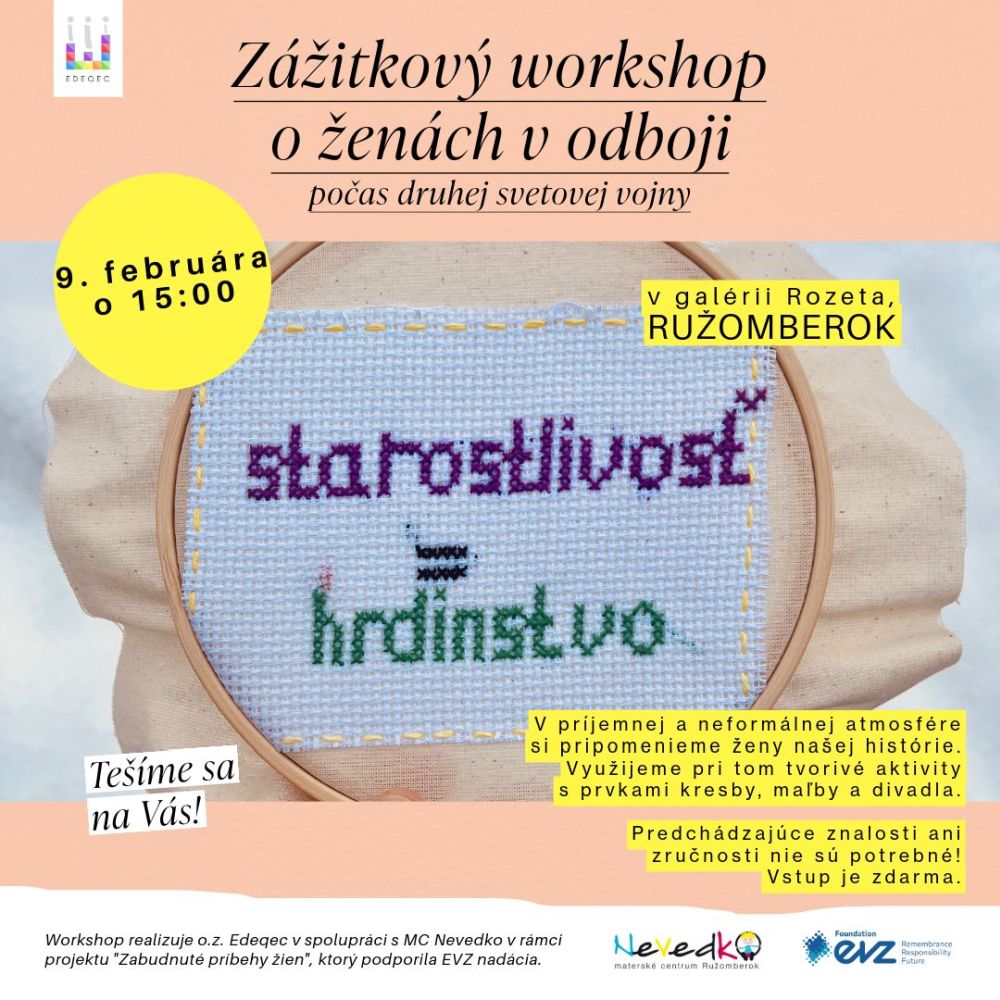 Workshop realizuje o.z. Edeqec v spolupráci s MC Nevedko v rámci projektu „Zabudnuté príbehy žien“, ktorý podporila EVZ nadácia.