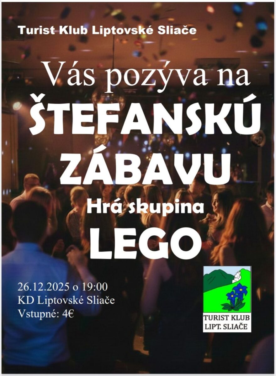 Turist klub Liptovské Sliače Vás pozýva na Štefanskú tanečnú zábavu.