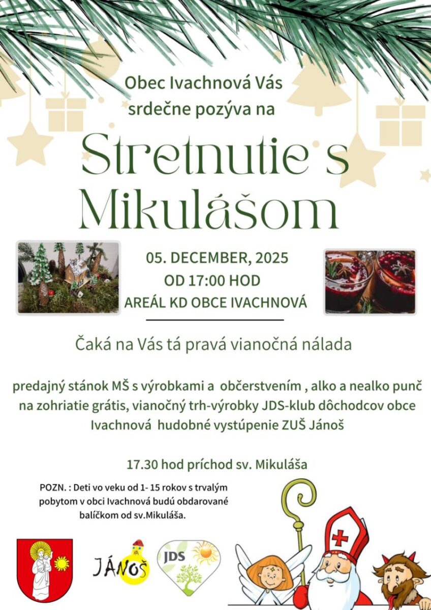 Obec Ivachnová Vás srdečne pozýva na Stretnutie s Mikulášom.