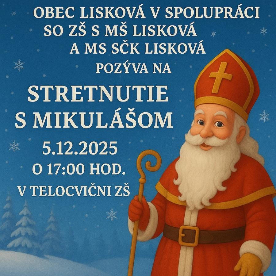 Obec Lisková v spolupráci so ZŠ s MŠ Lisková a MS SČK Lisková organizujú Stretnutie s Mikulášom.