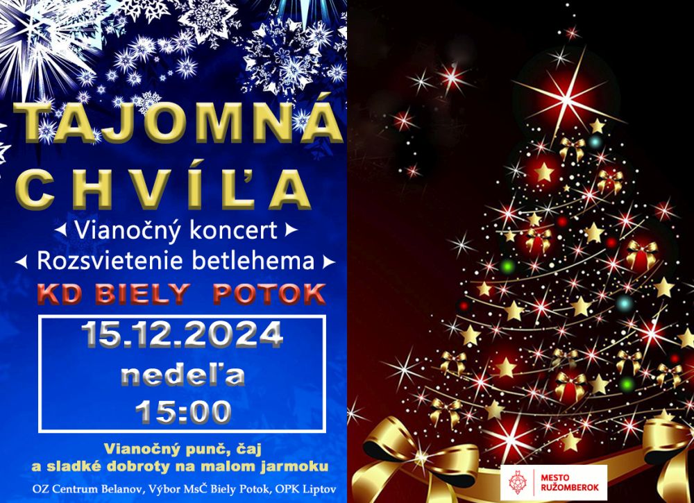 Občianske združenie Centrum Belanov a Výbor MsČ Biely Potok vás srdečne pozývajú na vianočný koncert s názvom Tajomná chvíľa.