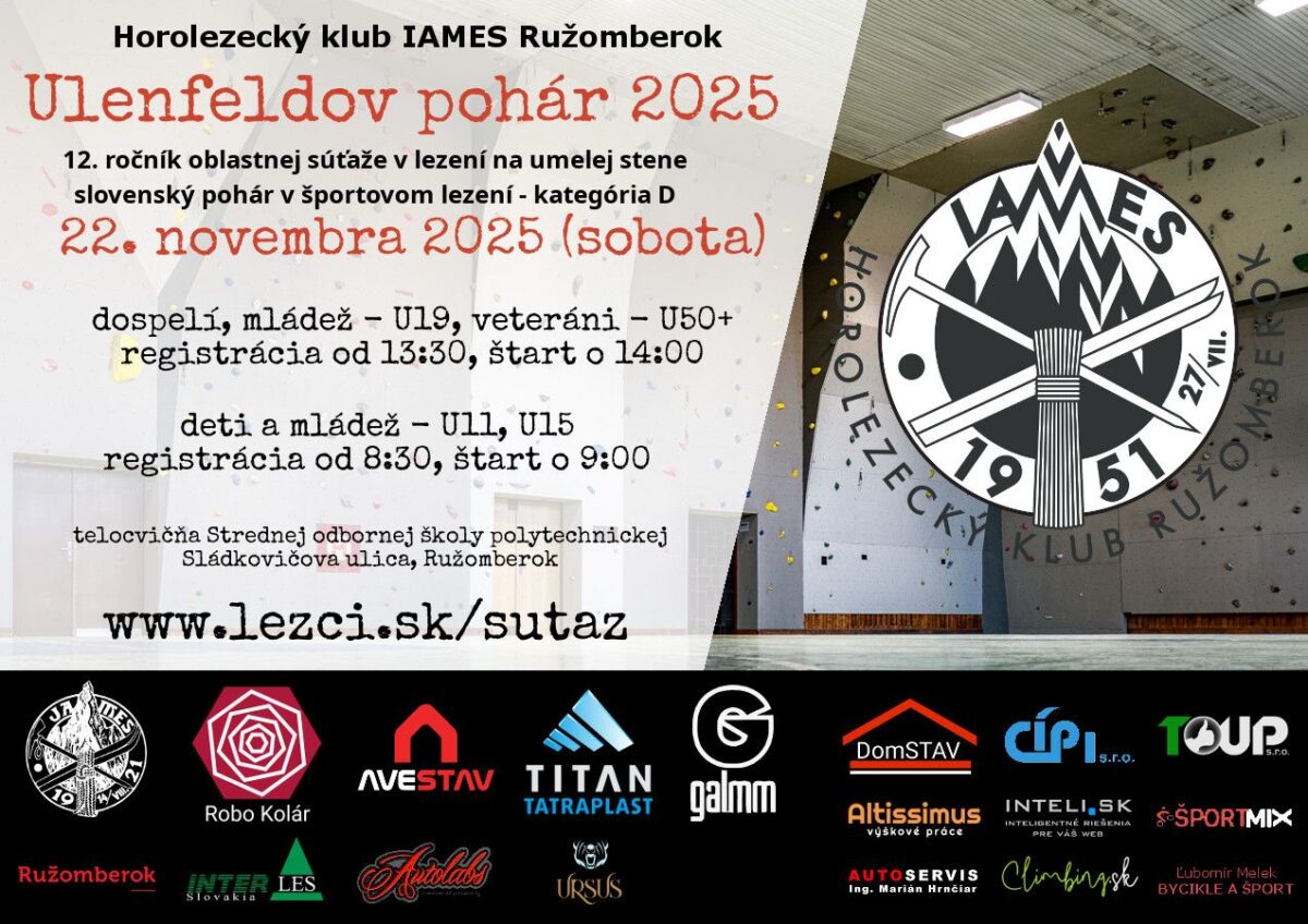 Horolezecký klub Iames Ružomberok vás pozýva na XII. ročník oblastnej súťaže v lezení na umelej stene (Slovenský pohár v športovom lezení – kategória D).