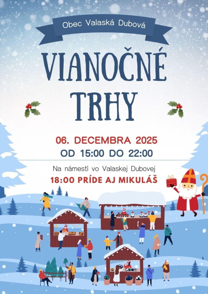 Obec Valaská Dubová vás srdečne pozýva na tradičné vianočné trhy.