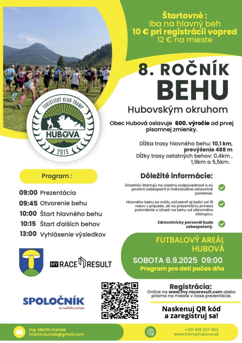 Turistický klub Tramp Hubová a Obec Hubová vás pozývajú na VIII. ročník tradičného Behu hubovským okruhom.