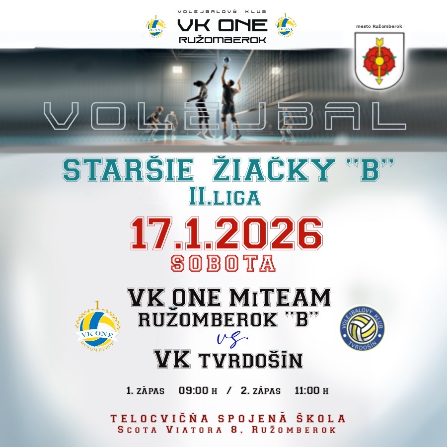 Volejbalový klub VK One Ružomberok vás pozýva na dvojzápas II. ligy starších žiačok „B“ vo volejbale.