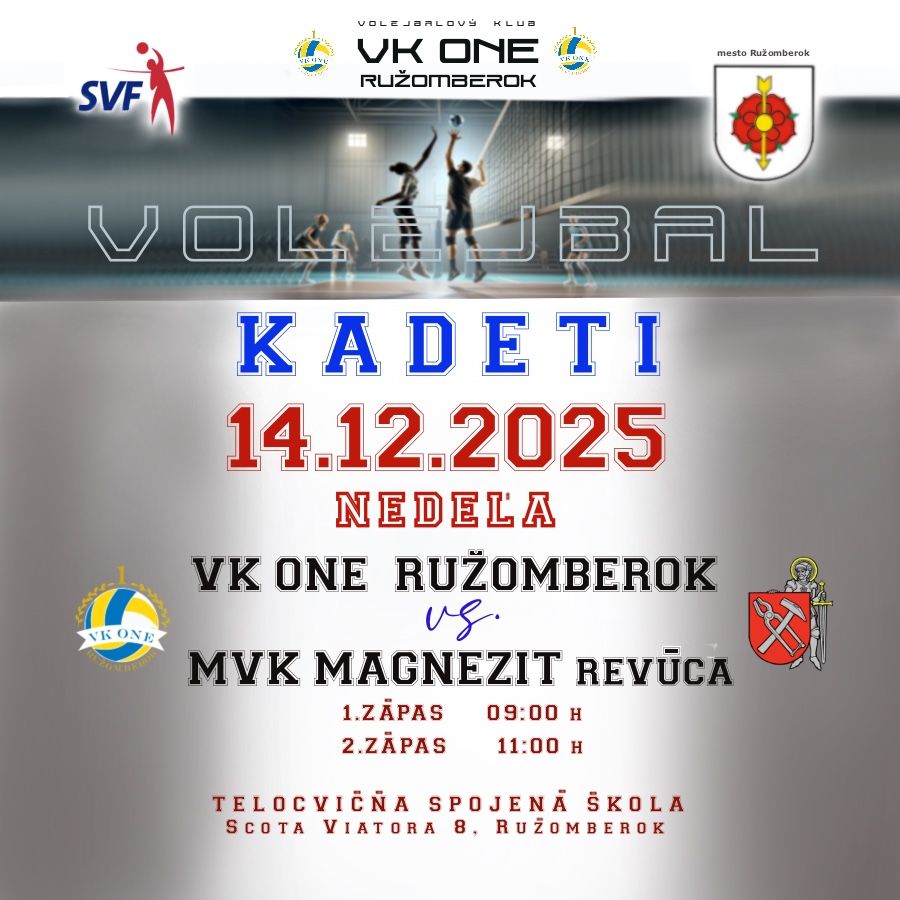 Volejbalový klub VK One Ružomberok vás pozýva na dvojzápas oblastnej súťaže kadetov vo volejbale.