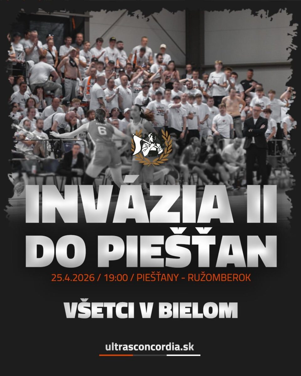 Fanclub Ultras Concordia 1906 a MBK Ružomberok vás pozývajú na výjazd na tretí finálový zápas basketbalovej extraligy žien Piešťanské Čajky – MBK Ružomberok. Zápas sa odohrá v Diplomat Aréne v Piešťanoch 25.04.2026 o 19:00 hod.